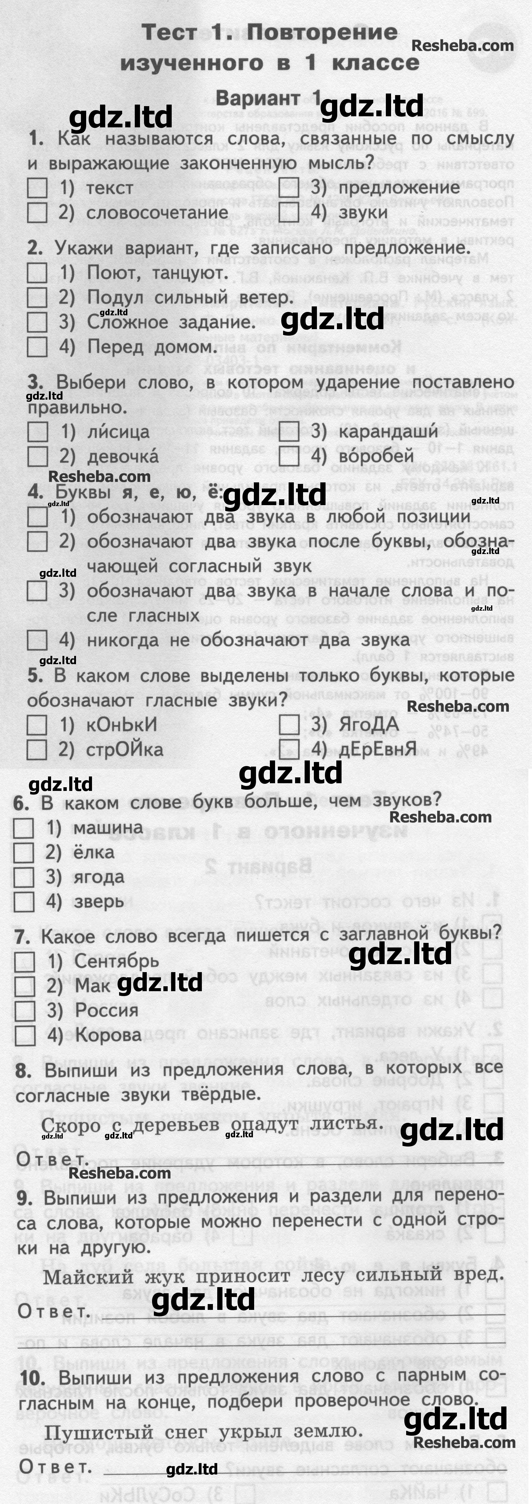 На семидесяти пяти страницах расположены семнадцать тестов, рассчитанных для решения по двум вариантам. Каждый из них в ГДЗ по русскому языку 2 класс Яценко отвечает какому-либо тематическому разделу, что позволяет быстро выявить недостаток познаний у учащихся. Все номера данного издания доступны онлайн.
