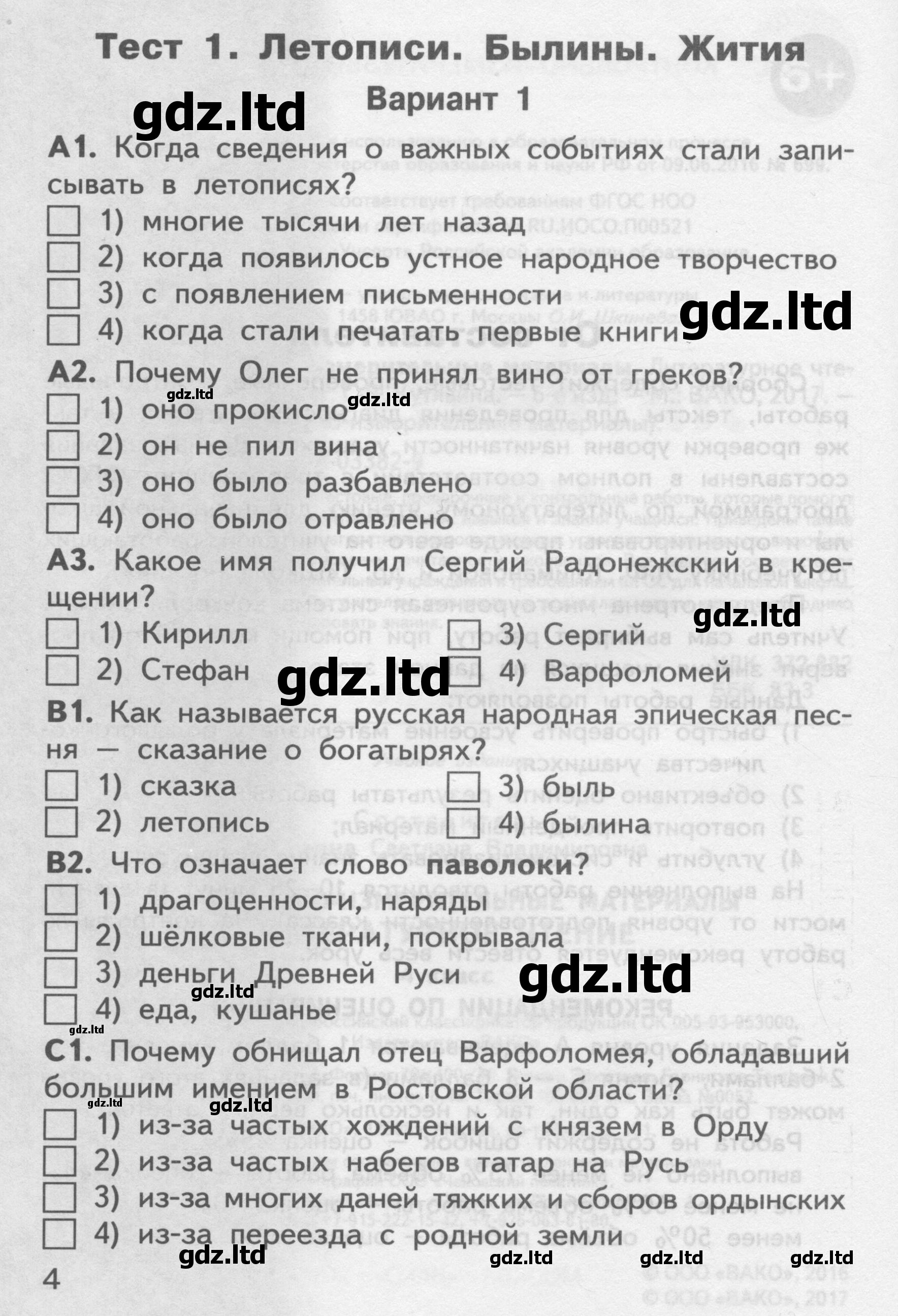 ГДЗ Литература 4 класс Кутявина - Контрольно-измерительные материалы «ВАКО»