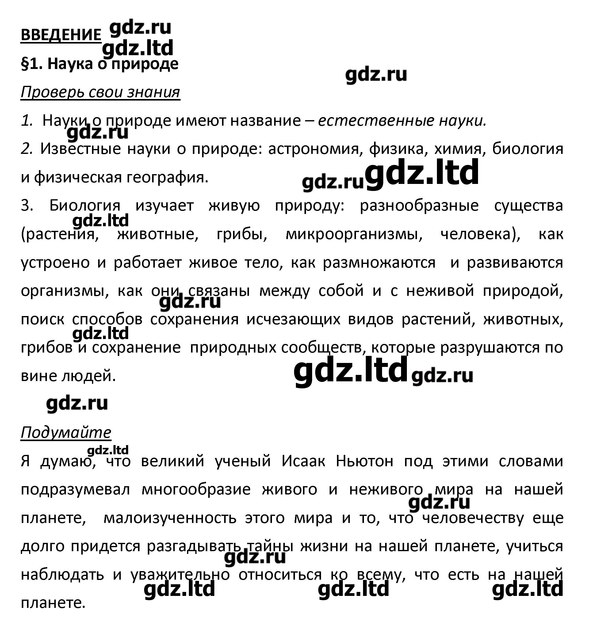 ГДЗ Биология 5 класс Плешаков, Введенский - Учебник «Русское слово»