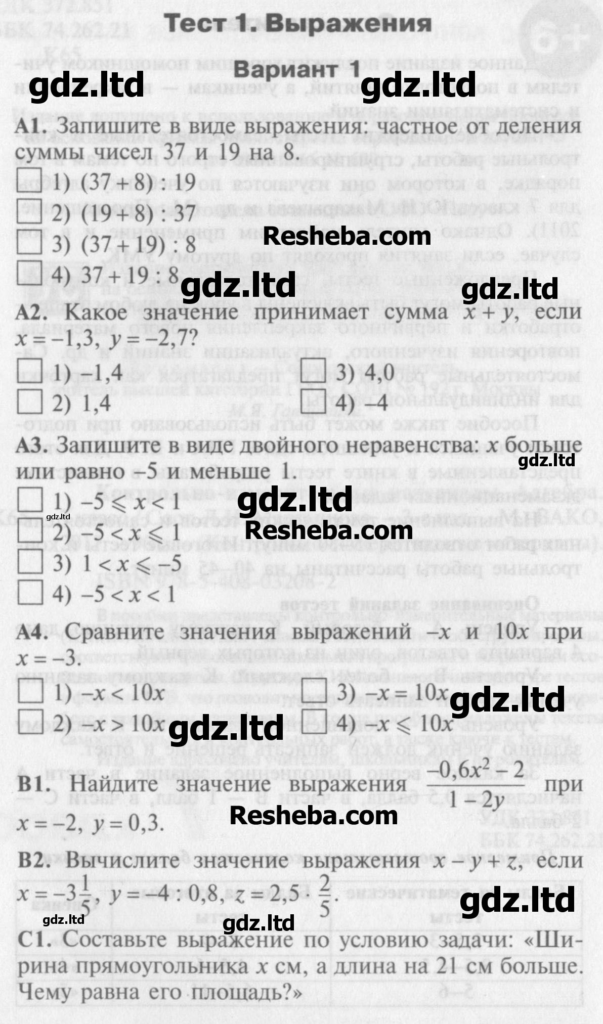 ГДЗ Алгебра 7 класс Мартышова - Контрольно-измерительные материалы «ВАКО»