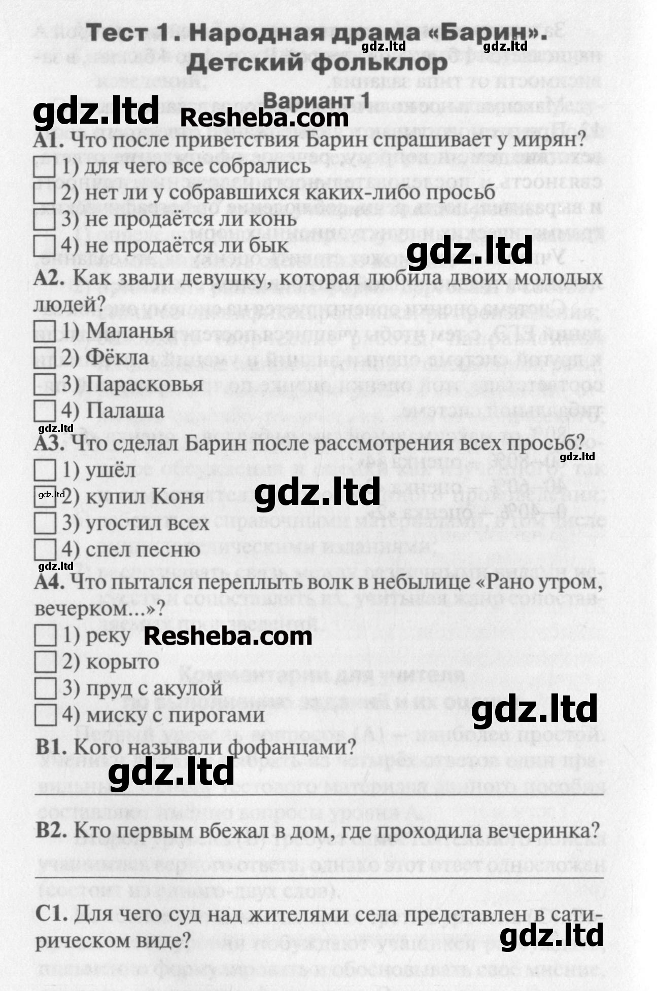 ГДЗ Литература 7 класс Зубова - Контрольно-измерительные материалы «ВАКО»