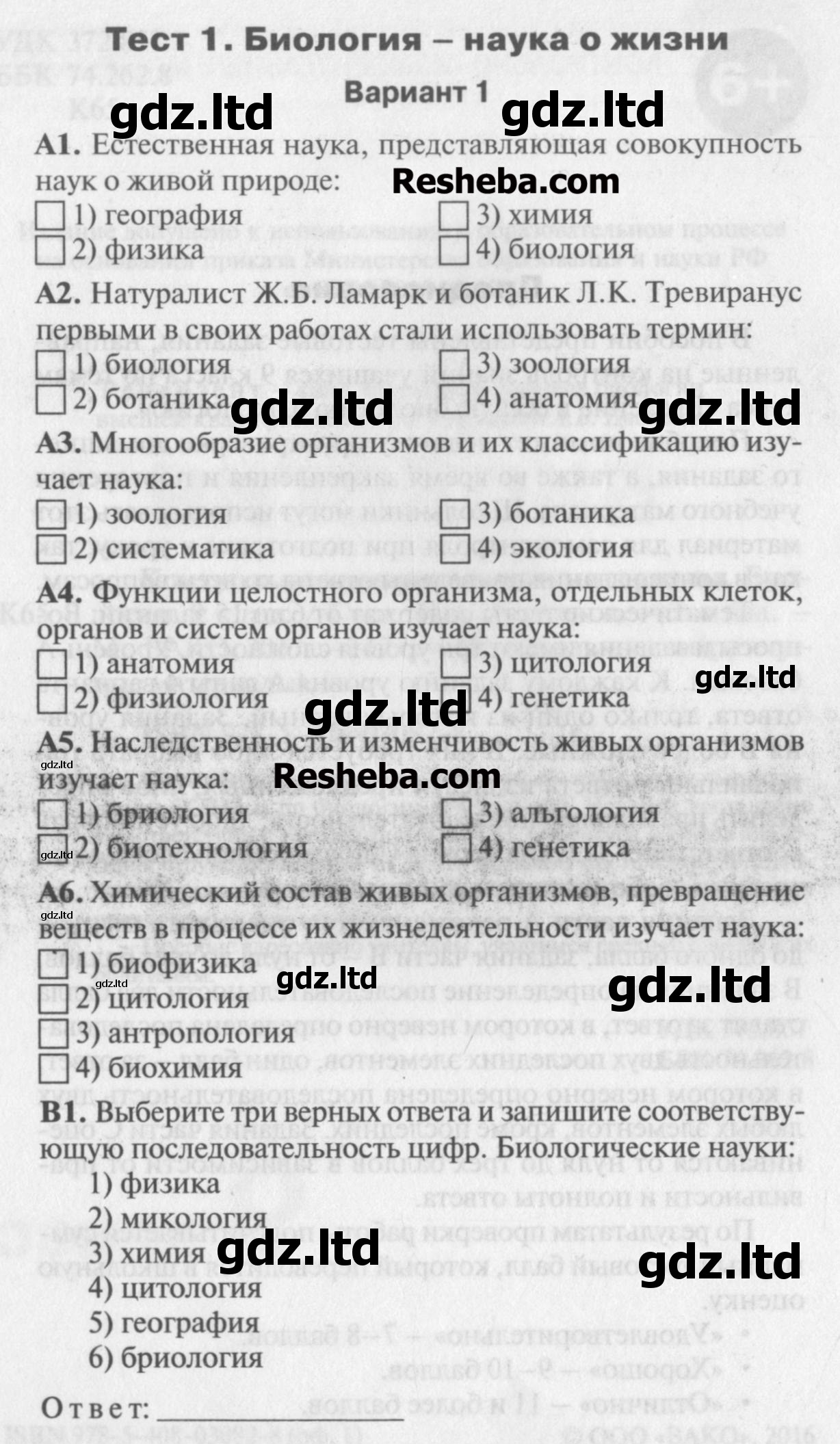 ГДЗ Биология 9 класс Богданов - Контрольно-измерительные материалы «ВАКО»